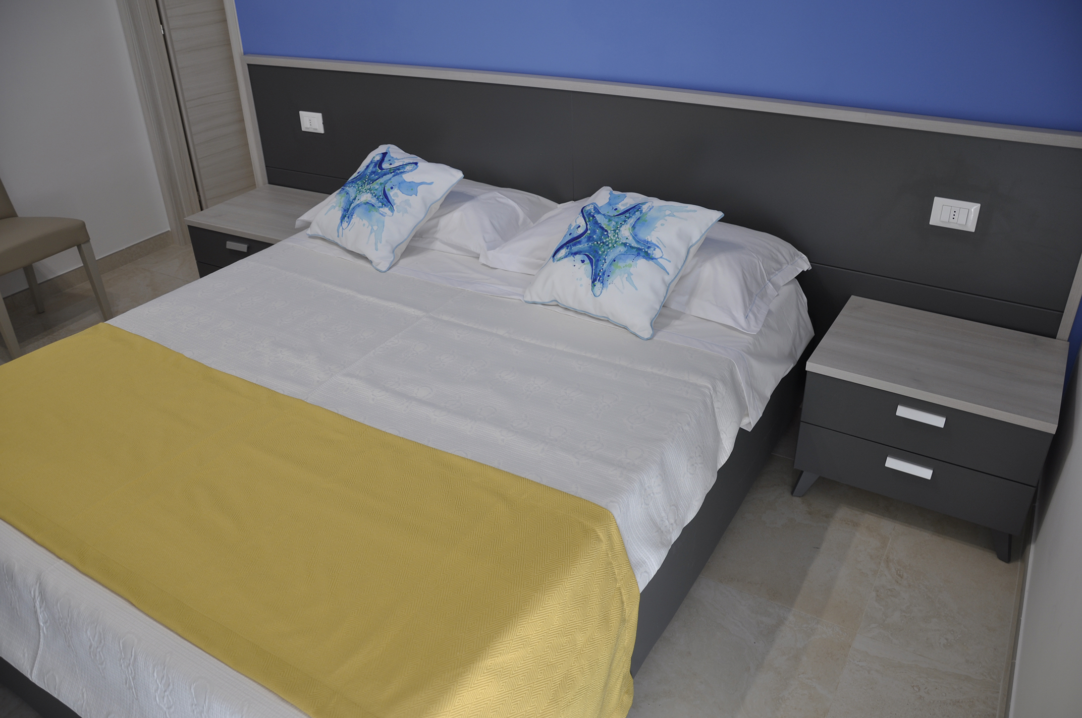 La camera 1 denominata BREZZA dispone di una superficie di 20 mq , dotata di tutti i confort è arredata con arredamento moderno, bagno in camera con doccia,  bidet e set di cortesia ,la camera dispone anche di frigo bar, cassaforte e televisore in HD 32 pollici aria condizionata e riscaldamento , per garantire un piacevole riposo il letto è attrezzato con materasso della linea memory anallergico. Dispone di un balcone vista mare laterale.